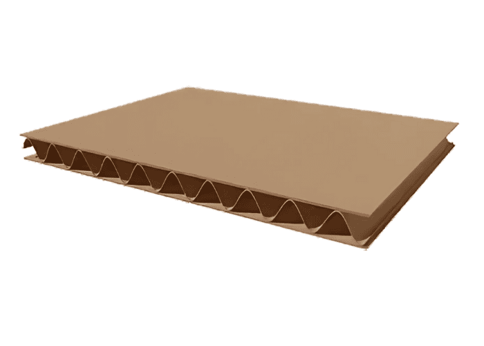 Estrutura formada por um elemento ondulado (miolo) colado a um elemento plano (capa). Geralmente fornecido em forma de bobinas.